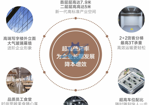 项目参数 【总占地面积】:7.2万㎡ 【总建筑面积】:26.99万㎡ 【产品年限】:?50年独立红本产权 【产品户型】: 1栋总部大楼建面约4.5万㎡,共19层 (单层面积2300㎡) 4栋独栋厂房建面约1.3-1.6万㎡,每栋6层 (单层面积2100-2700㎡) 5栋高层厂房建面约2-2.6万㎡,每栋8-10层 (单层面积2400-2600㎡) 【厂房荷载】: 首层2T,二层1.5T,三层1T, 四层以上0.6/0.75T,十层以上0.4T 【厂房层高】: 首层7.9m,二层5m,三层以上4.5m, 十层以上4.2m