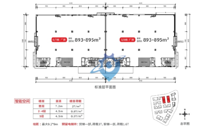 土地性质:M1工业用地,50年国土红本产权 【占地/建筑面积】一期占地6.8万㎡,建筑面积12.6万㎡,全新现房! 【容积率】容积率低至1.8,超宽楼距,惠州同类型项目最低。 【一期产品类型】独栋厂房20栋、高层厂房2栋、宿舍316套、配套商业4000㎡ 【园区配套】员工宿舍、食堂、特色餐饮、便利店、超市、ATM取款等 【消防】丙二类 【用电】80KVA/k㎡ 【面积】4400平/栋,总楼层5F 【层高】首层7.2m,2-5层4.5m 【荷载】首层2T/㎡,2-4层0.8T/㎡,5层0.5T/㎡ 【电梯】预留一客一货,客梯荷载1.6T,货梯荷载3T 【柱距】8m*10.5m/8m*9m,最大进深68m