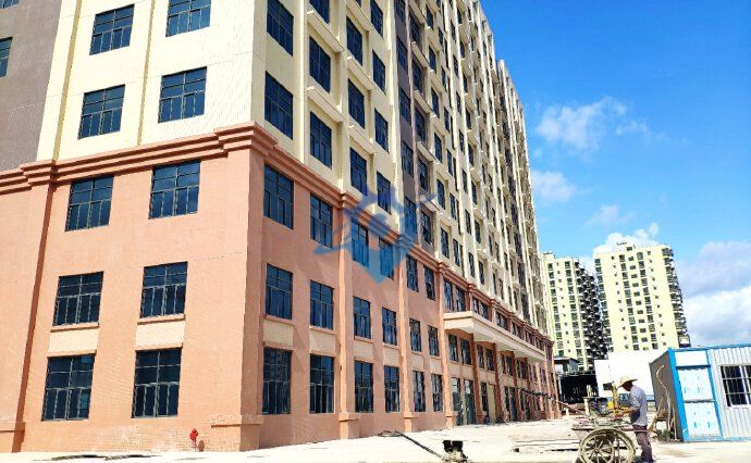 惠阳镇隆工业园区全新厂房出租 原房东独门独院实际面积!!!! ? 1、占地面积:?6500m? 2、建筑面积:?11300?m? ?????其中标准五层厂房面积约:?8300?(一楼高度5.5米),钢构800,滴水9米 3、宿舍面积:?2200一栋六层,一楼按办公室设计 4、其他面积:?50 5、变压器:?630KVA(可装1000) 6、空地约:?2500?m? 7、区位介绍:成熟工业区,工业气氛浓厚,交通方便,易招工
